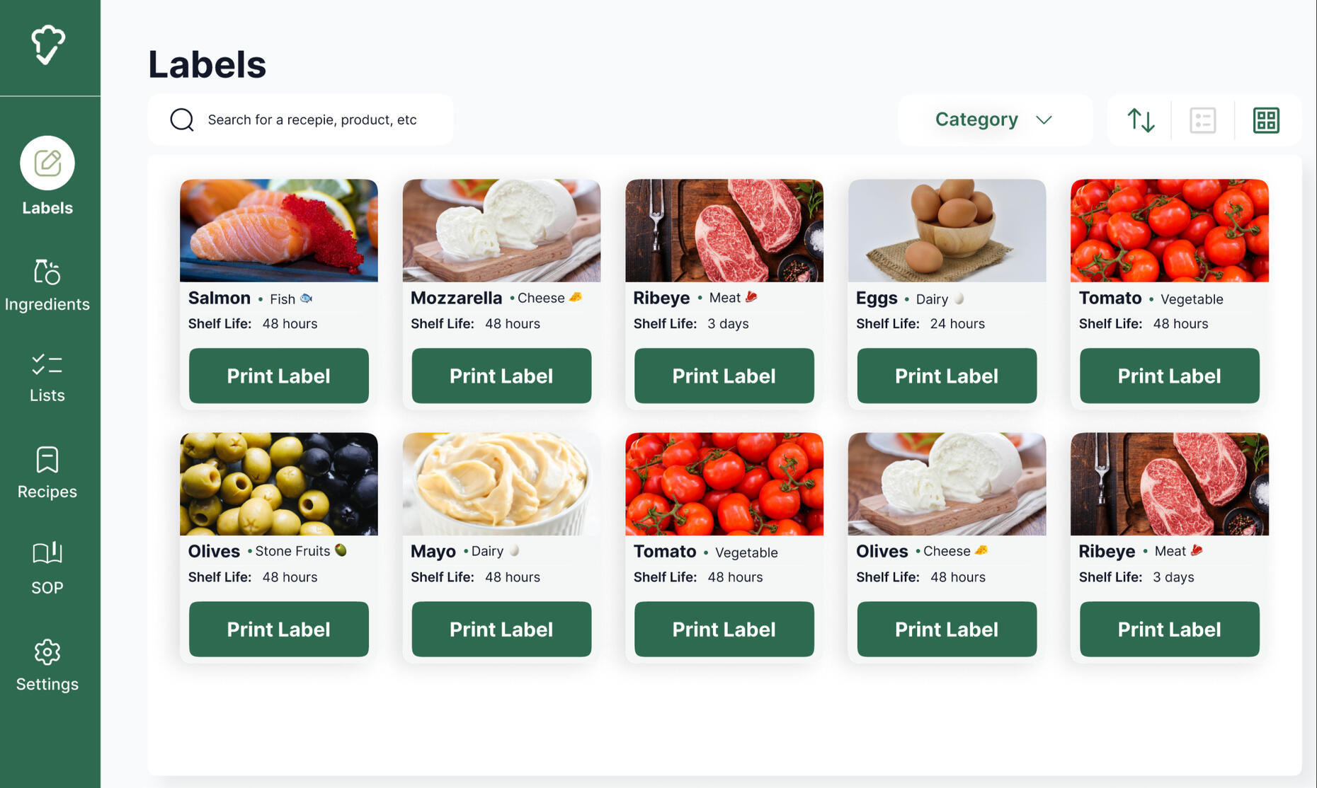 Adaugă ingrediente în câteva secunde și generează automat etichete conforme HACCP. Ai totul presetat — durata de valabilitate, zona din bucătărie și data deschiderii — gata de printat prin Bluetooth, direct de pe tabletă.